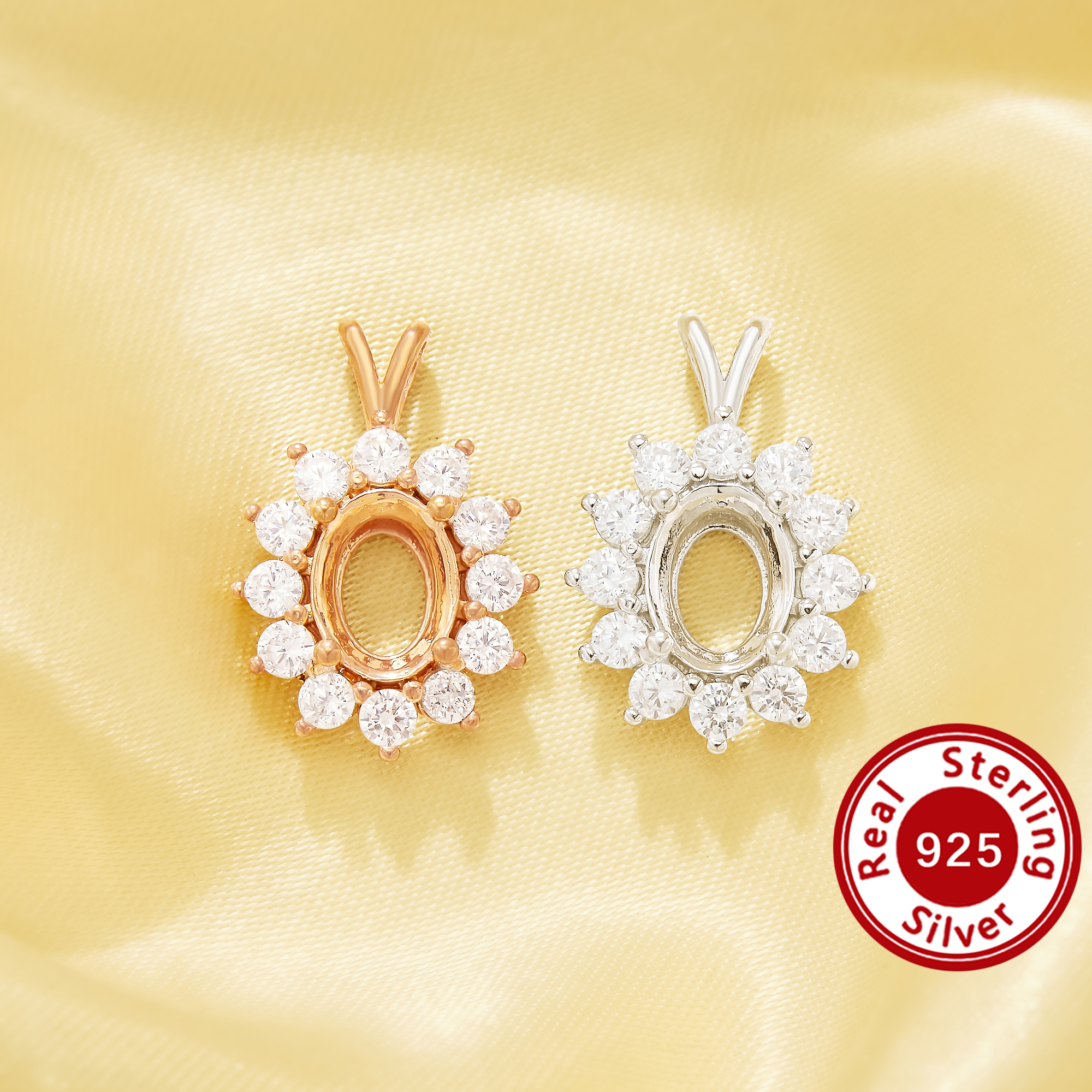 6x8MM Halo Oval prongss Pendant Settings,Flower Solid 925 Sterling Silver Rose Gold Plated Charm,Vintage Styles Pendant Charm,DIY Pendant Supplies 1421277