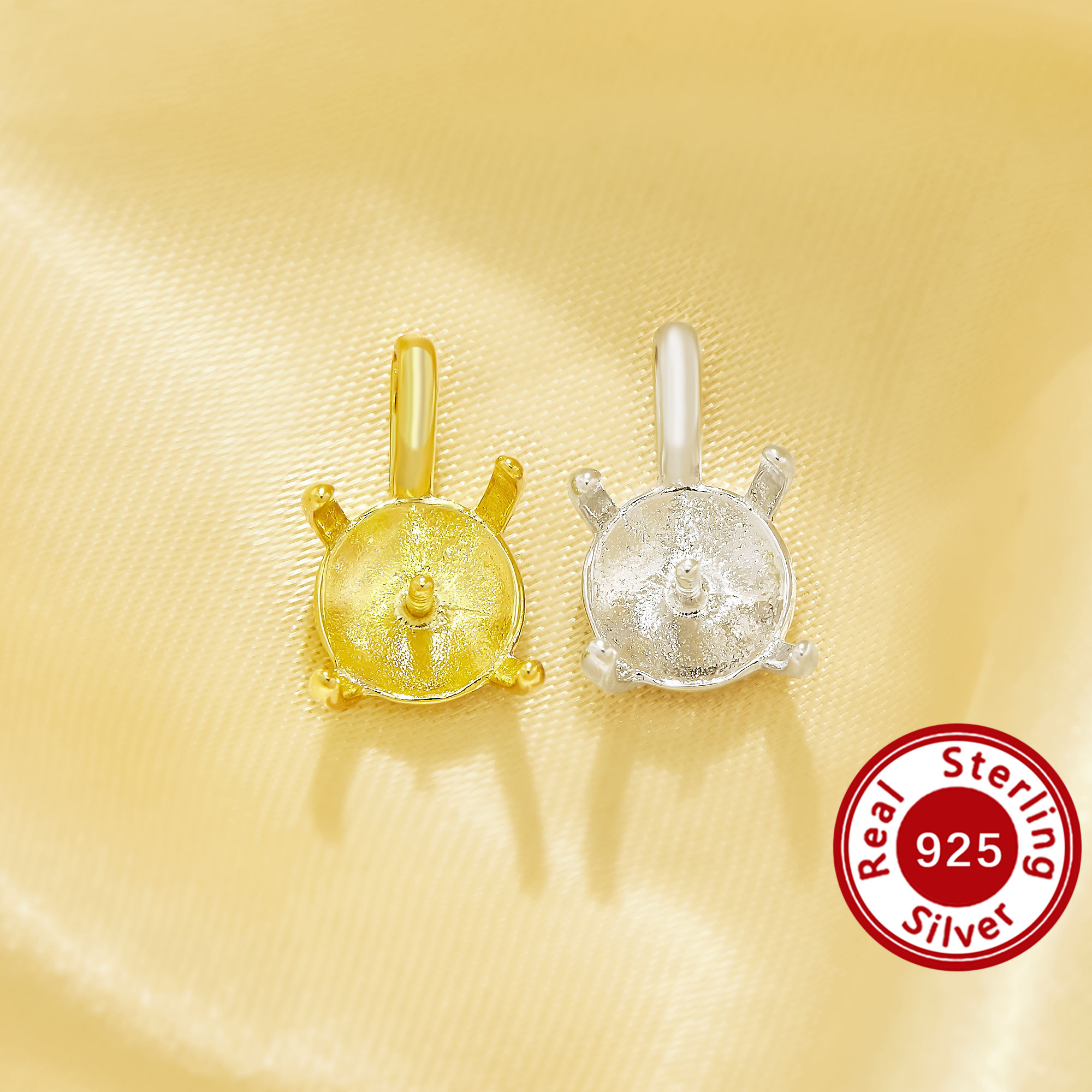 Keepsake Breast Milk Resin Ball Round Pin Pendant Settings For 8mm Half Drilled Pearl Bead,Simple Solid 925 Sterling Silver Gold Plated Pendant Charm,DIY Pendant Supplies 1411479