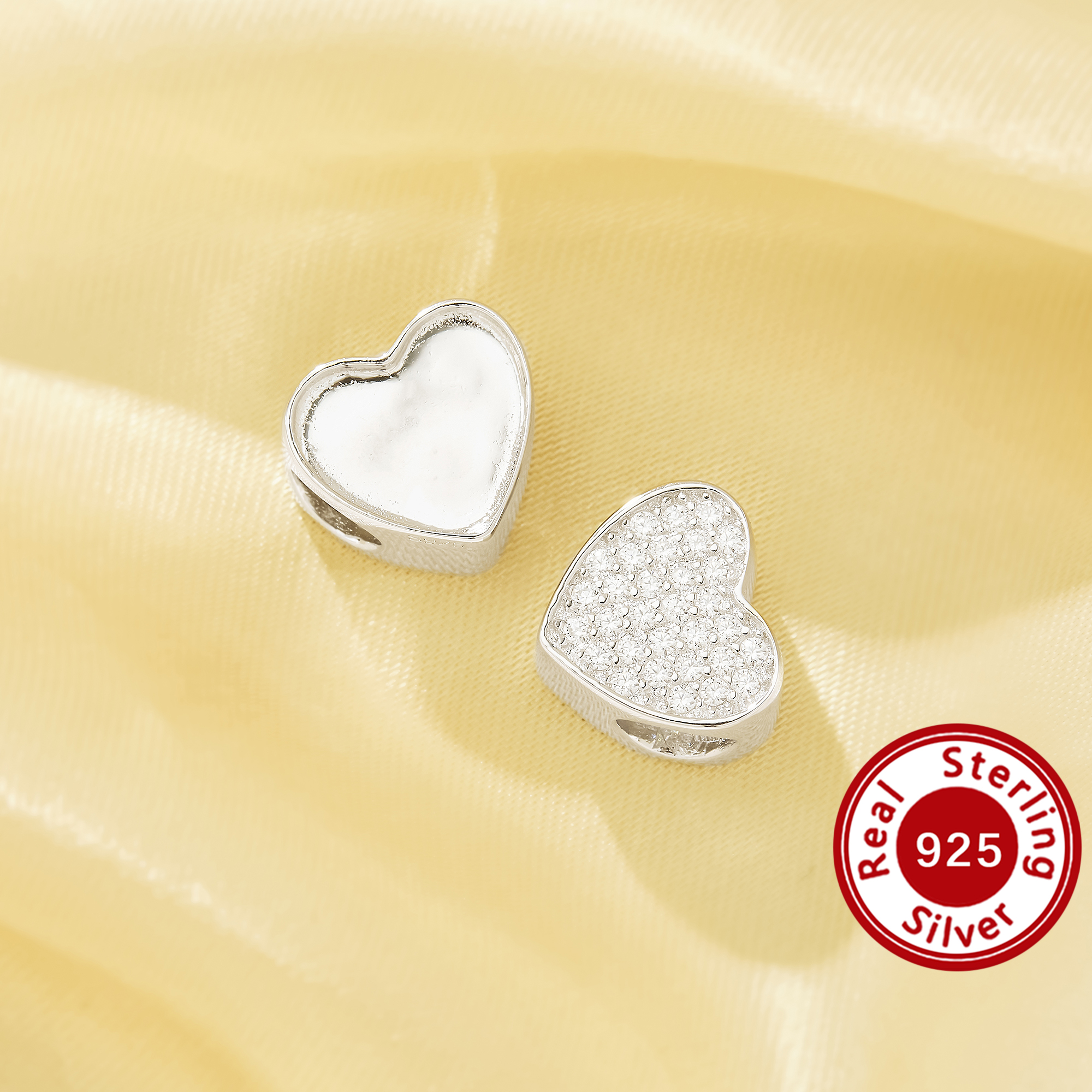 Keepsake Breast Milk Resin Heart Bezel Beads Settings,Double Sides Big Hole Solid 925 Sterling Silver Heart Pendant Beads with 4.5MM Hole,DIY Pendant Supplies 1431589