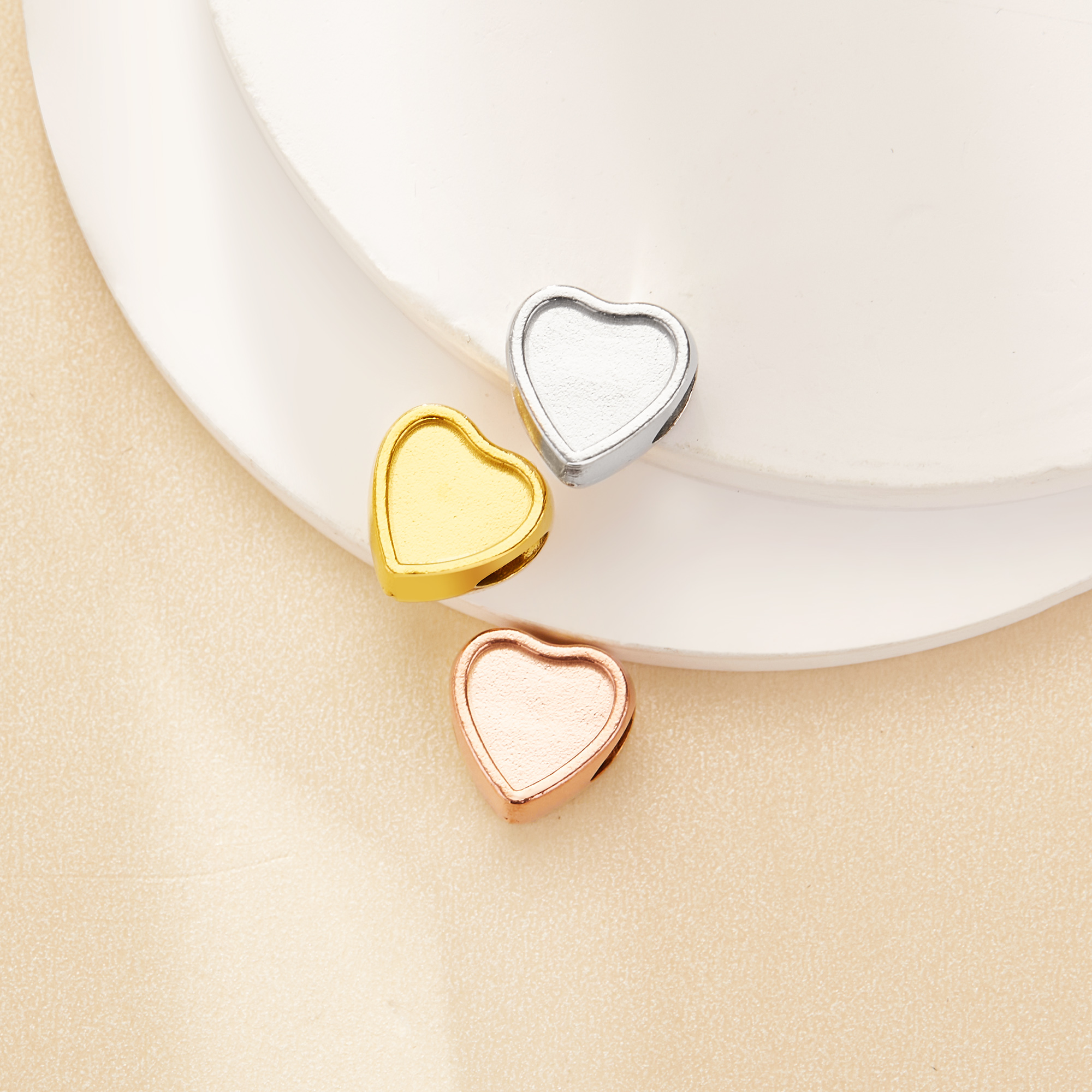 5MM Heart Bezel Stainless Steel Pendant Settings,Yellow Gold Silver Heart Pendant Charm,Vintage Styles Pendant,DIY Pendant Blank Supplies 1431512