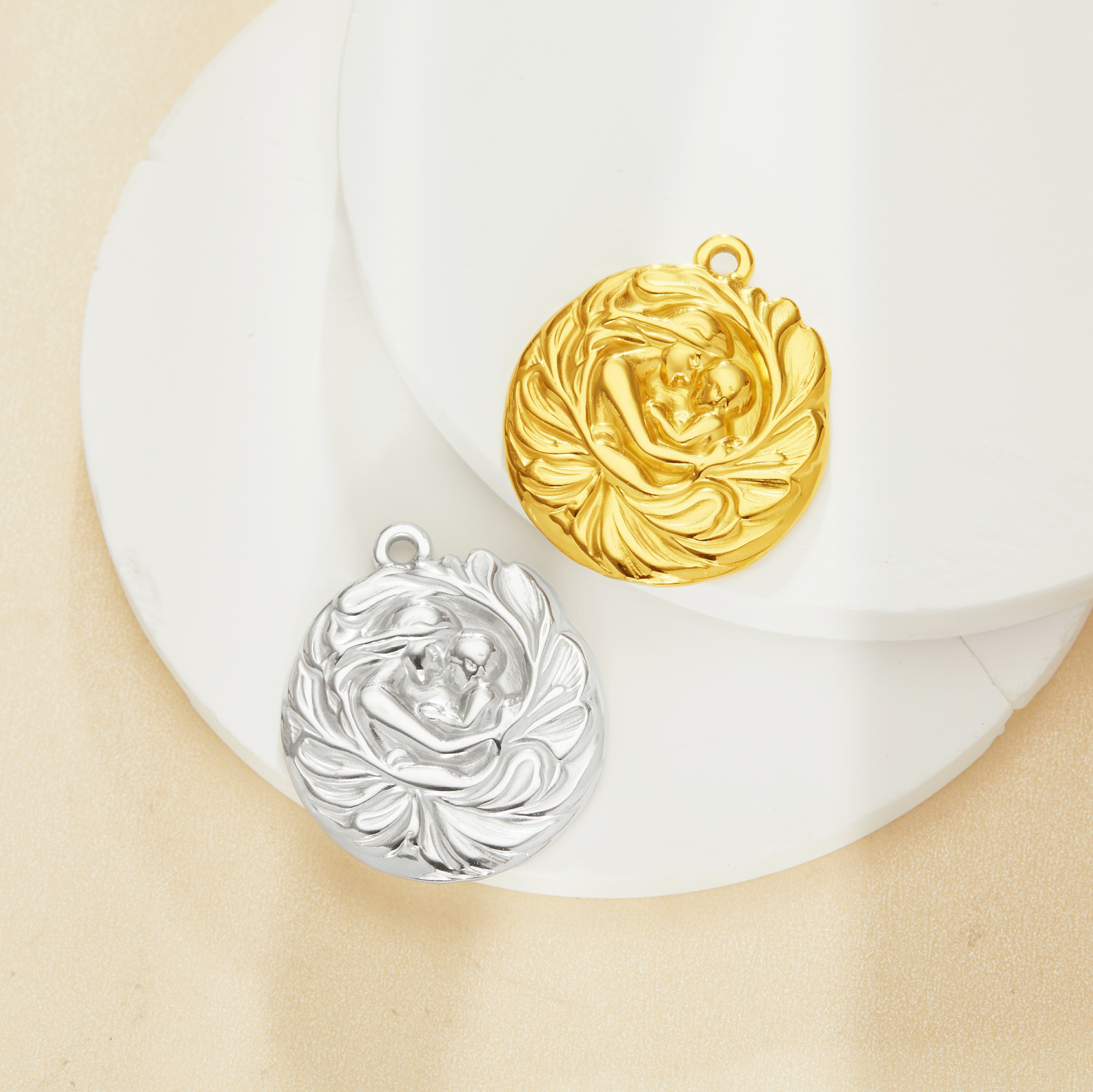 Mother and Baby Flower Pendant Charm,Stainless Steel Gold Plated Rose Flower Pendant,Simple Flower Pendant,DIY Pendant Supplies 1431534
